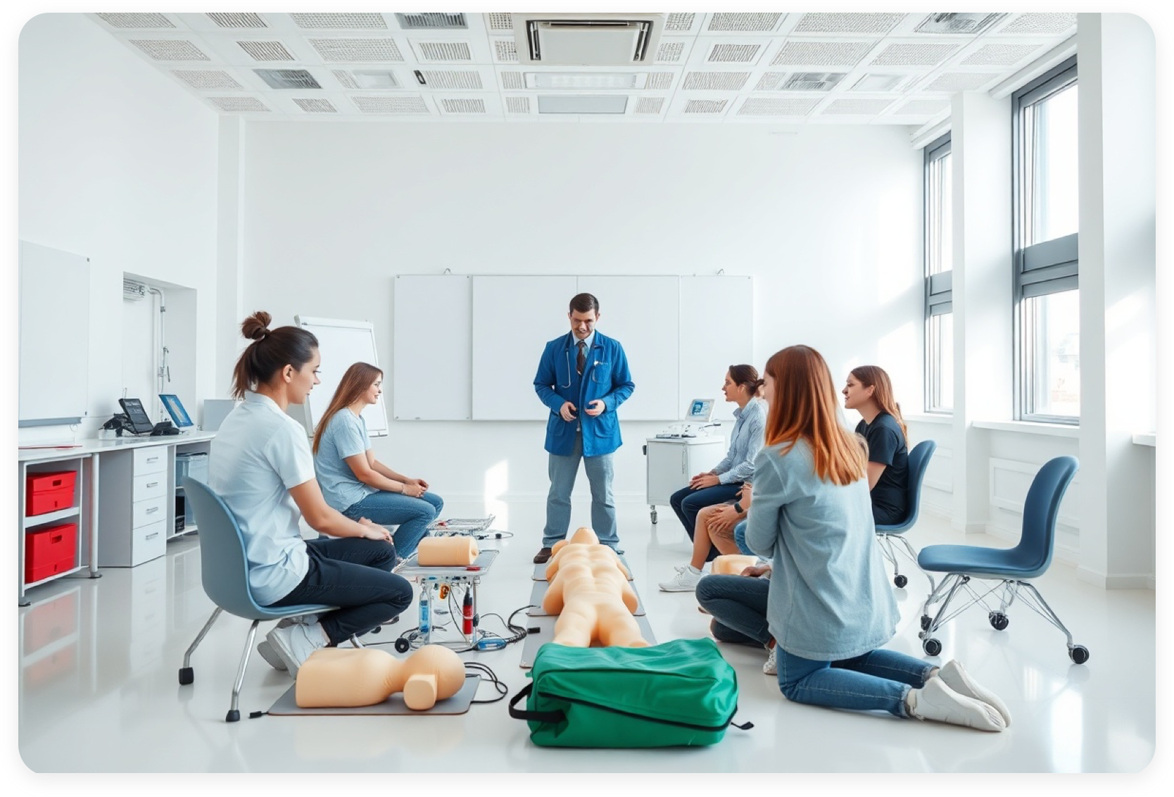 Formation pratique de 10 heures avec un professionnel de la santé certifié dans nos locaux modernes.